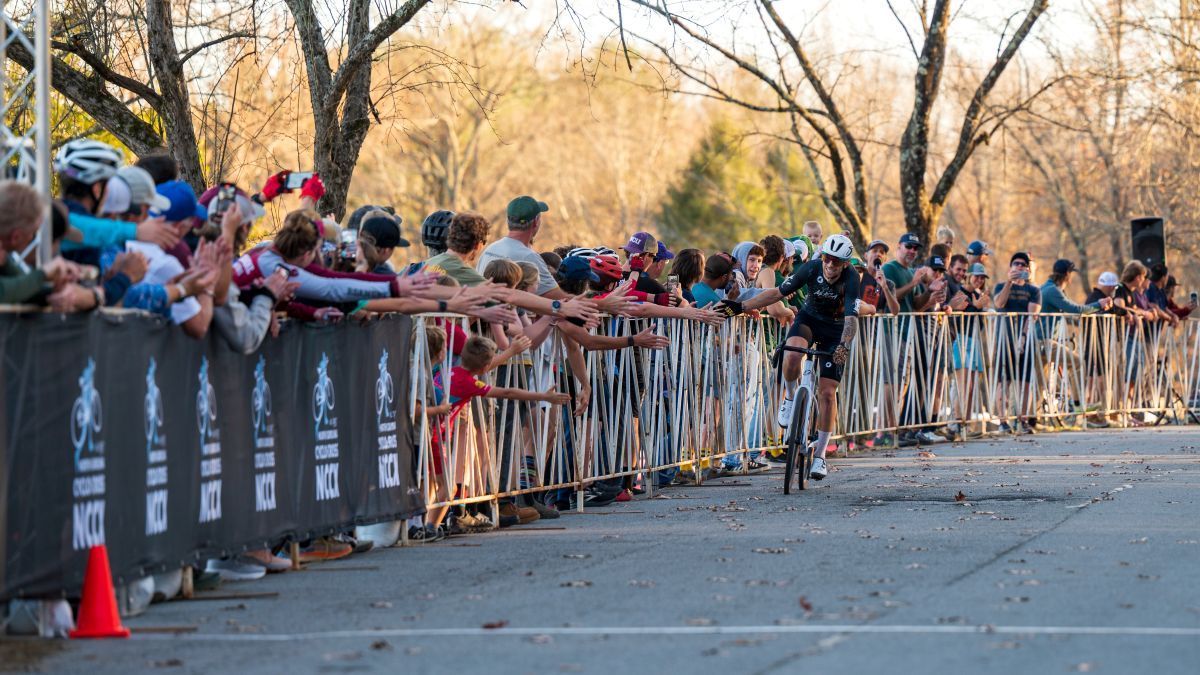 Dry and sunny conditions welcomed racers to the second day of the NCGP weekend in Hendersonville, NC. The race weekend, presented by Hunter Subaru, is the final stop on the USA Cycling Cyclocross National Series calendar. The day two race course featured several course changes, including a double-180 transverse on the Collegiate Off Camber and 180 turn to approach the barriers in reverse. The course also brought back the traditional “Wall,” a steep grass ascent with a paved approach. The elite women started strong keeping together in the first half of the lap. A small group of 4 composed of Ella Brenneman from CXD Trek Bikes, Lizzy Gunsalus of Marion University and current Pan-American Champion, Jolanda Neff, with Cannondale Factory Racing and Lauren Zoerner with Competitive Edge Racing broke away with Brenneman taking the lead into lap two.