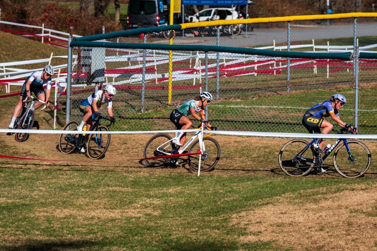 Zoerner, Gunsalus, and Neff kept the pace animated, pushing to shatter the group. Elli Clark of Brevard College and Amelia Shea from Feedback Sports gave chase individually. The leading three eased off the pace slightly heading into three laps to go, staying together for the remainder of the lap, until on the return to the start, Gunsalus clipped a stake and went into the tape. While Zoerner worked to pass Gunsalus, Neff had already taken advantage of the mishap, creating space between herself and Gunsalus on the approach to the finish line. Gunsalus recovered quickly, overtaking Zoerner in her pursuit of Neff. Gunsalus reunited with Neff coming into the first off-camber section off the start.